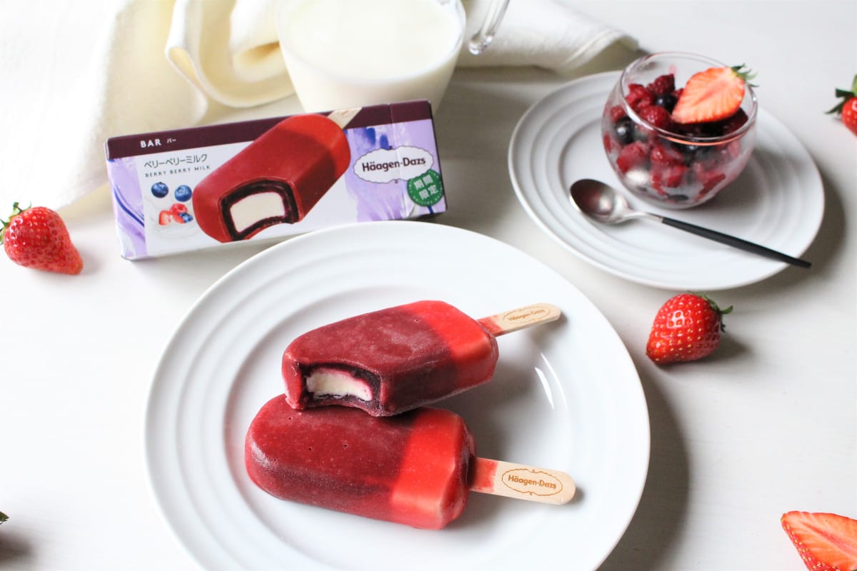濃厚な甘みと酸味が魅力のブルーベリー果肉と甘酸っぱいミックスベリー果汁の2層でミルクアイスクリームをコーティングしたハーゲンダッツ バー「ベリーベリーミルク」が登場!