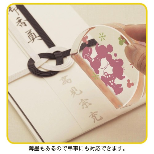 また、クリア感が素敵なネームスタンプ本体には仲良く背中を合わせる「ミッキーマウス」と「ミニーマウス」のシルエットもデザインされています☆