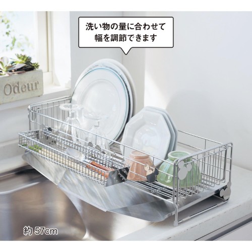 シンクのサイズに合わせたり、洗い物の量に合わせて幅を調整できるすぐれものです!