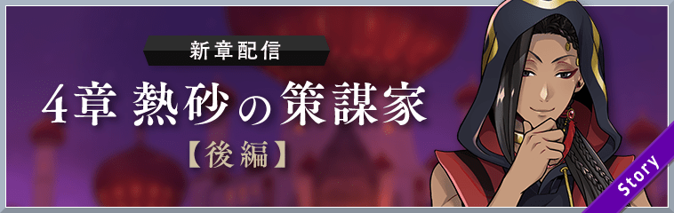 同人気アプリにて、メインストーリー 4章「熱砂の策謀家」の後編配信が決定しました!