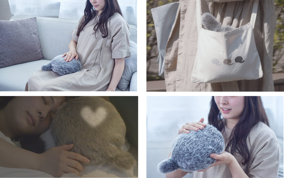 「疲れて家に帰った時、癒やしの存在が家にいてくれたら…」という想いから、犬や猫のように癒やしを与えてくれるロボットをつくろうと、動物の「しっぽ」に着目し、2018年11月に誕生した「Qoobo(クーボ)」