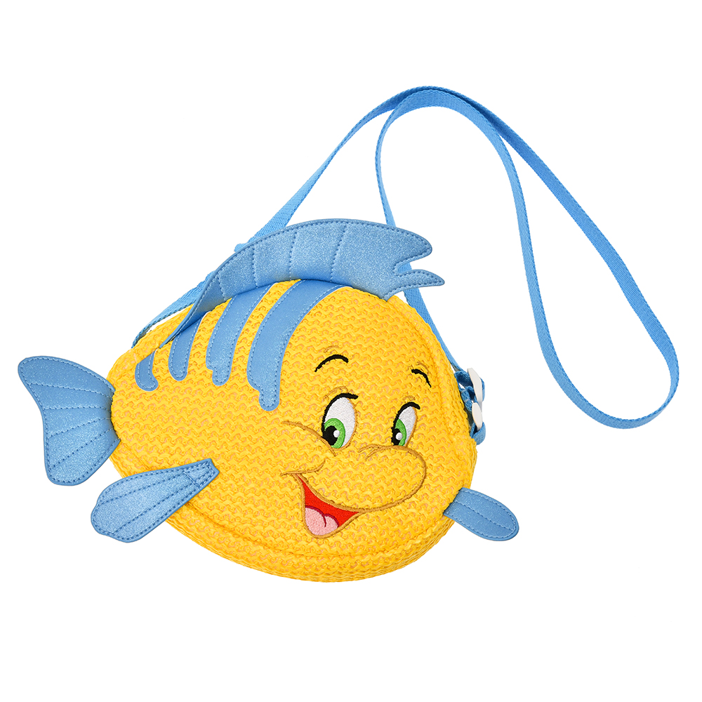 『リトル・マーメイド』に登場する「アリエル」の親友「フランダー」がデザインされた、かご風編みのショルダーバッグ。
