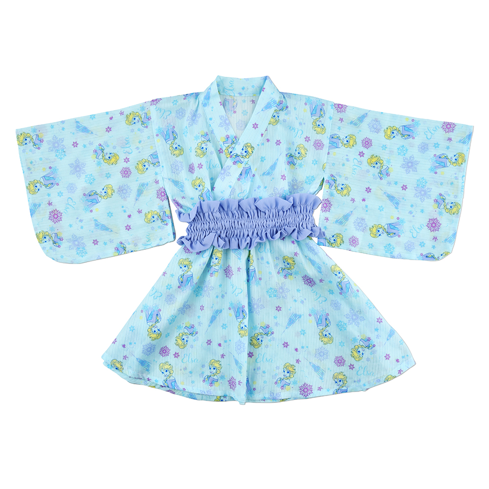 「アナと雪の女王」シリーズのヒロイン「エルサ」がデザインされた、ワンピースタイプの浴衣と帯のセット。