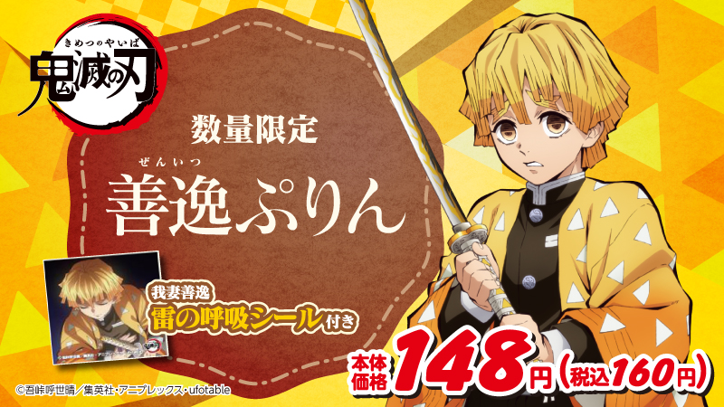 「雷の呼吸」シール付き!ローソンストア100『鬼滅の刃』善逸ぷりん