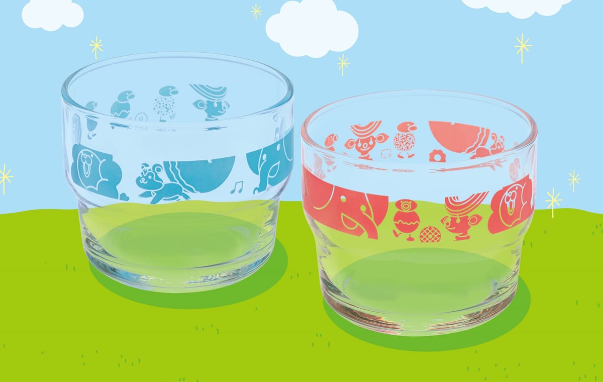 そんな『キッズセット』の新グッズとして登場する「つよいこカップ」は、小さい頃から本物のガラスに触れる事が食育にもつながるという考えから開発された子供用のカップです。