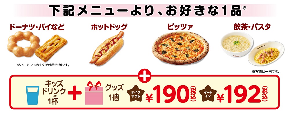 ドーナツやドリンク、グッズがセットになったお子さん向けの人気メニュー『キッズセット』