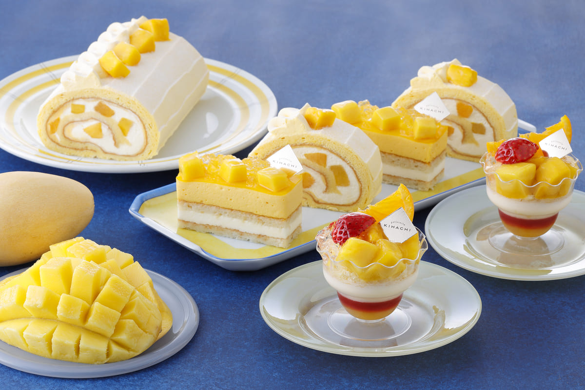 マンゴーのスイーツとメロンのスイーツは、パティスリー キハチ各店舗にて、2020年6月30日(火)までの期間限定で販売中です。