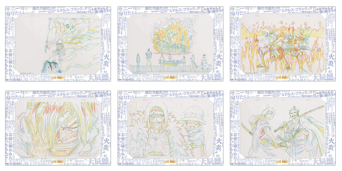 初期の名シーンからワノ国編まで新旧様々な瞬間が切り取られたアートはファン垂涎!