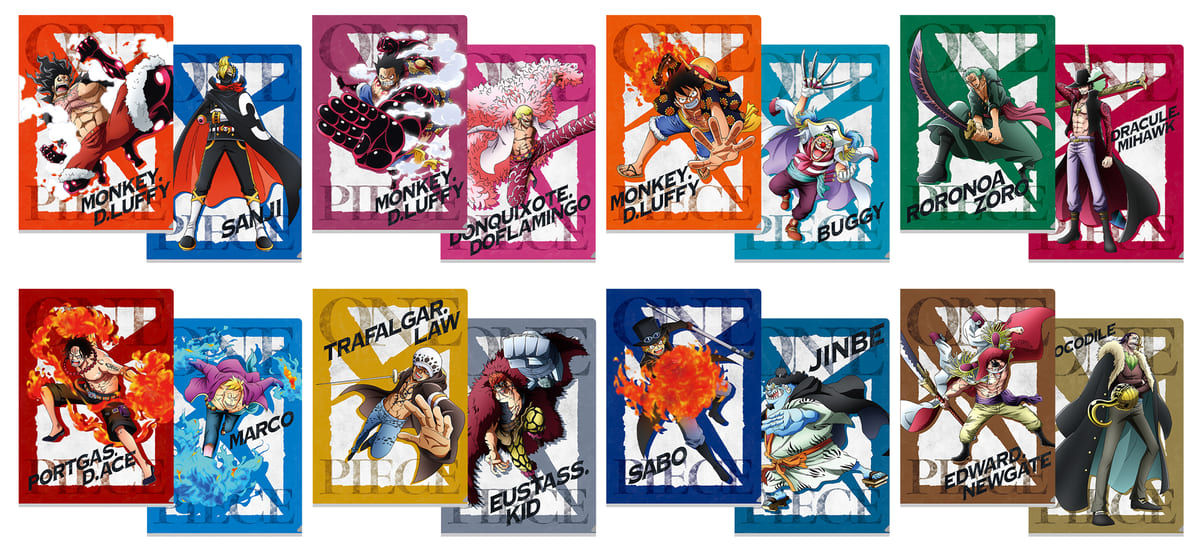 「ルフィ×サンジ」や「ルフィ×ドフラミンゴ」など、嬉しい2枚1セットです。