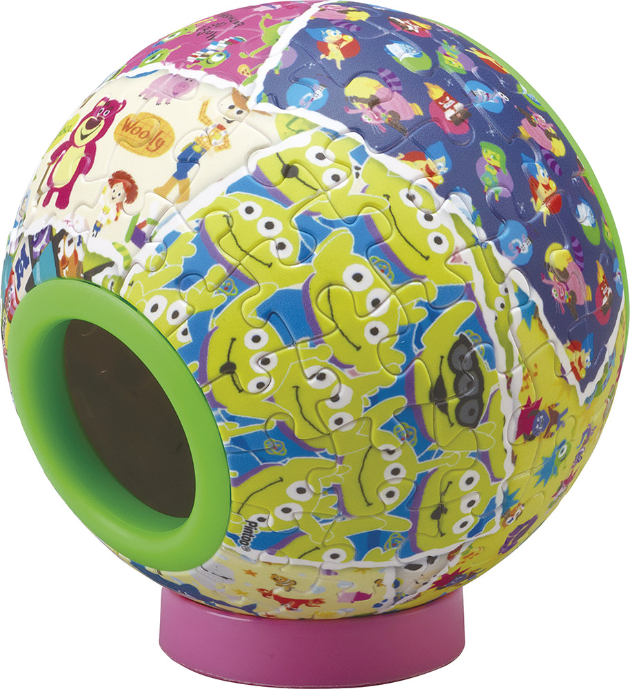 プラスチックピースのパズルを組み上げると、『トイ・ストーリー』に登場する「ルクソー・ボール(ピクサー・ボール)」をイメージしたデザインの卓上時計が完成します。