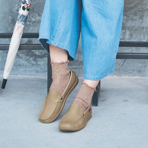 ベージュのレインモカシン。