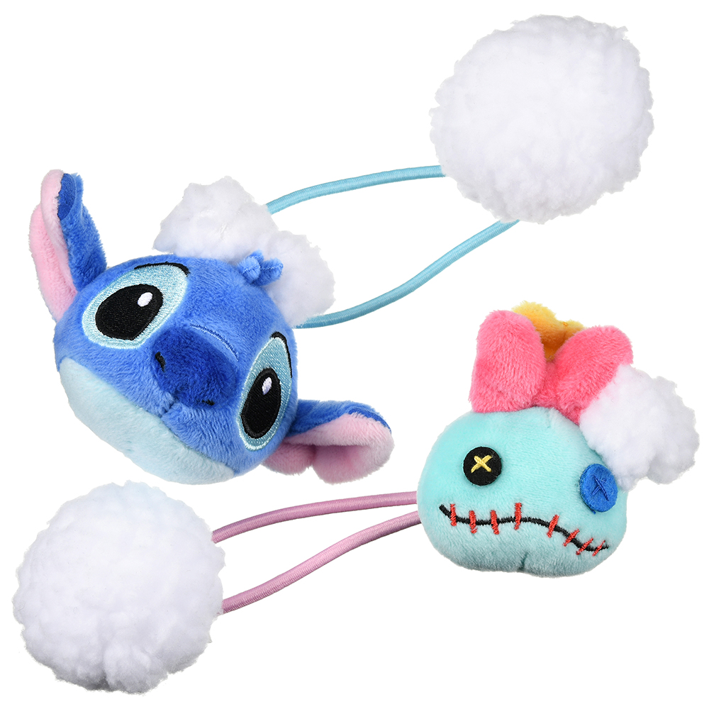 モコモコ泡をつけた「スティッチ」と「スクランプ」のぬいぐるみ風「ヘアポニー」