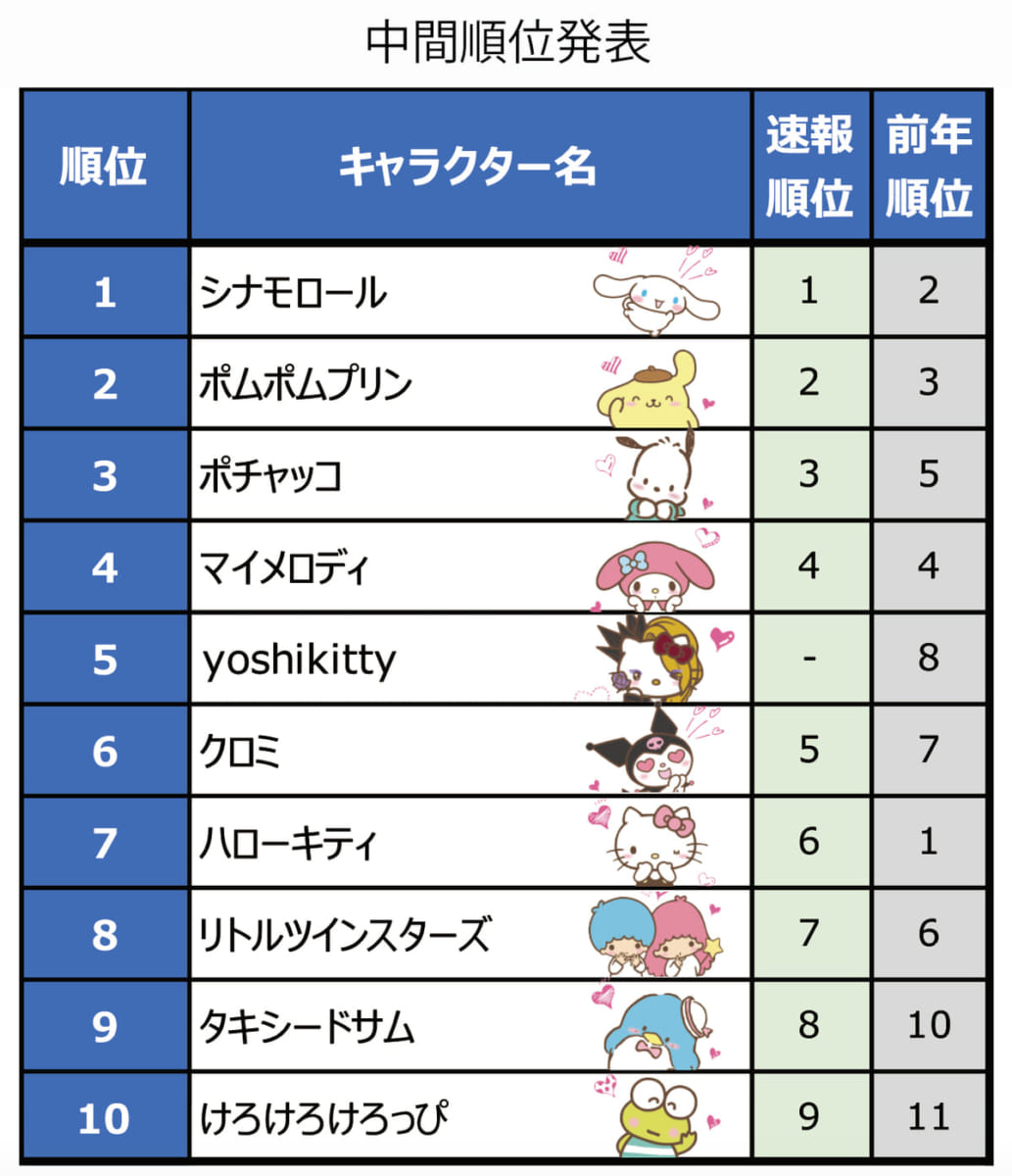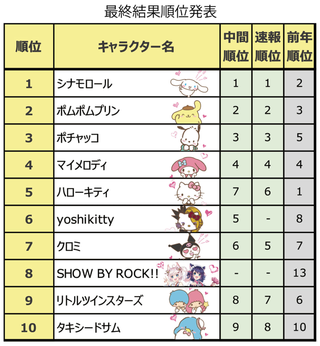 公式サイトやいちご新聞、サンリオオンラインショップでの集計結果が反映されました。