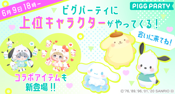 また、キャラクター大賞上位の「シナモロール」「ポムポムプリン」「ポチャッコ」の3キャラクターが「ピグパーティ」に登場し、会いに来てくれた方たちに直接お礼を伝えます☆