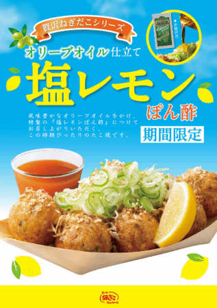 築地銀だこの人気シリーズ「贅沢ねぎだこ」に、爽やかなレモンがアクセントになった「塩レモンぽん酢」が登場!