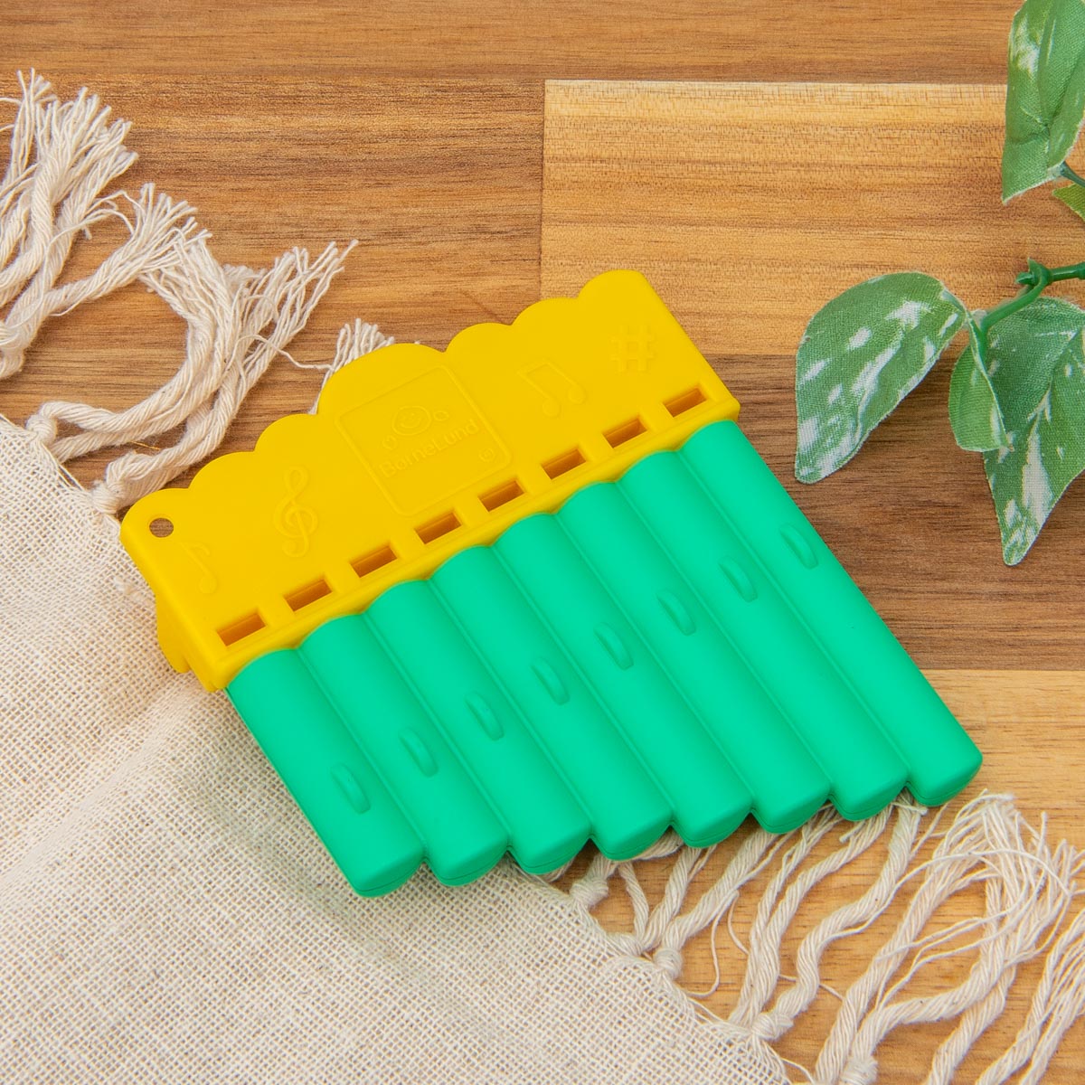 1オクターブの音が鳴らせるおもちゃで、裏の吹き口から息を吹き入れると音が鳴ります。