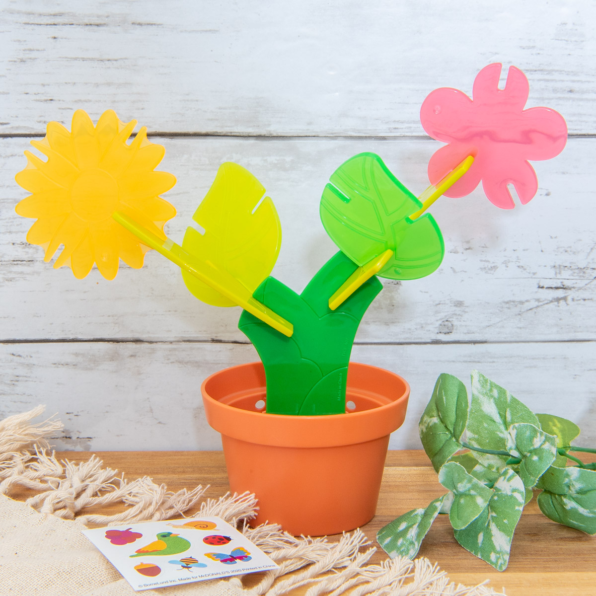 枝・葉・花の位置は全て自由に組み合わせて楽しめ、シールも思い思いの場所に貼って仕上げるおもちゃ。