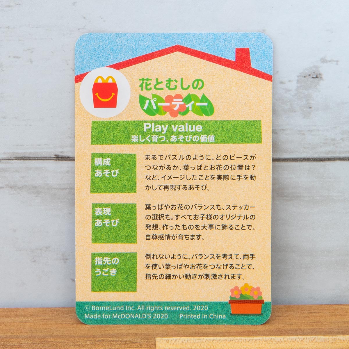 おもちゃの遊び方はもちろん、ボーネルンドの想いや、それぞれのおもちゃで遊ぶことを通じて得られる学びなどについても解説した保護者の方向けのカードです。