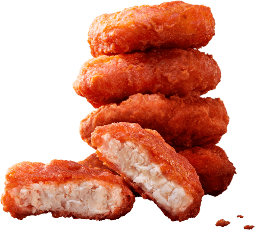 唐⾟⼦の⾟みとガーリックやオニオンの旨みで、後引くおいしさがたまらない、スパイシーなチキンマックナゲットです。