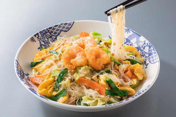 タンツーそぼろ・海老・野菜などがたっぷり入った具だくさんビーフンです。