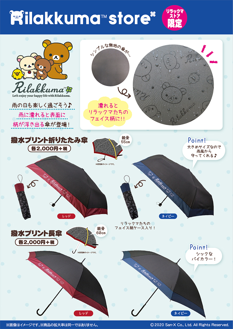 「リラックマ」の「撥水プリント折りたたみ傘」と「撥水プリント長傘」は、リラックマストア東京駅店で2020年6月26日より先行販売、その他のリラックマストアでは2020年7月4日(土)から販売開始です。