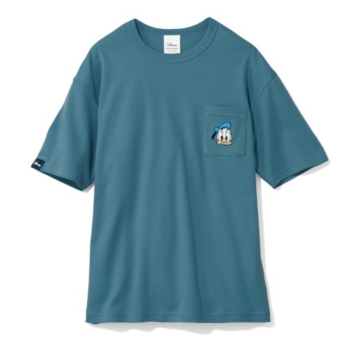 くすみのあるニュアンスカラーと左胸ポケットのキャラクター刺繍が可愛い、ディズニーデザイン「ちびカオポケットTシャツ」の紹介でした☆