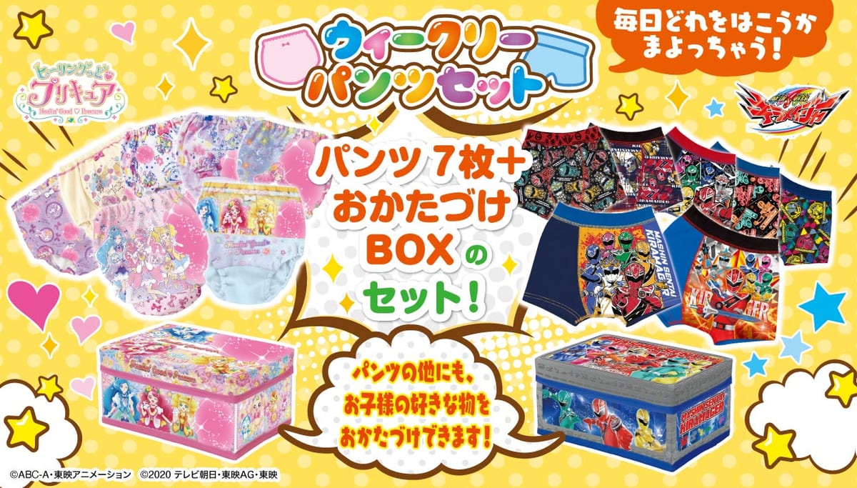 「魔進戦隊キラメイジャー」と「ヒーリングっど♥プリキュア」の、パンツ7枚とおかたづけBOXがセットになった「ウィークリーパンツセット」が、プレミアムバンダイ内「バンダイアパレルストア」にて、2020年6月12日(金)11時より予約受付を開始しました。