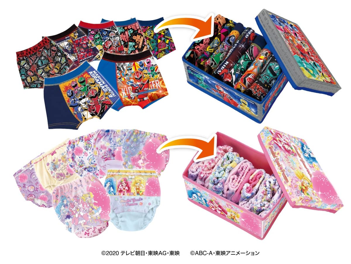 「魔進戦隊キラメイジャー」と「ヒーリングっど♥プリキュア」が毎日のお着がえを応援してくれる、パンツとおかたづけBOXのセット!