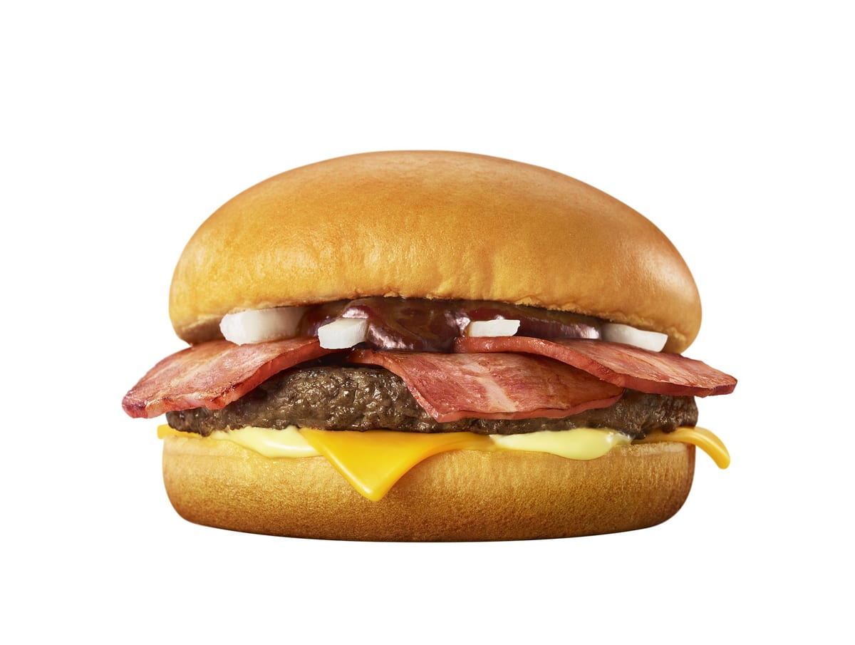 ジューシーさが自慢の厚みのある「100%ビーフパティ」にスモーキーなベーコンをなんと3枚も使用!