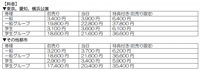 ※すべて税込価格、前売券が完売時は当日券の販売なし、特典付きチケットは前売り限定