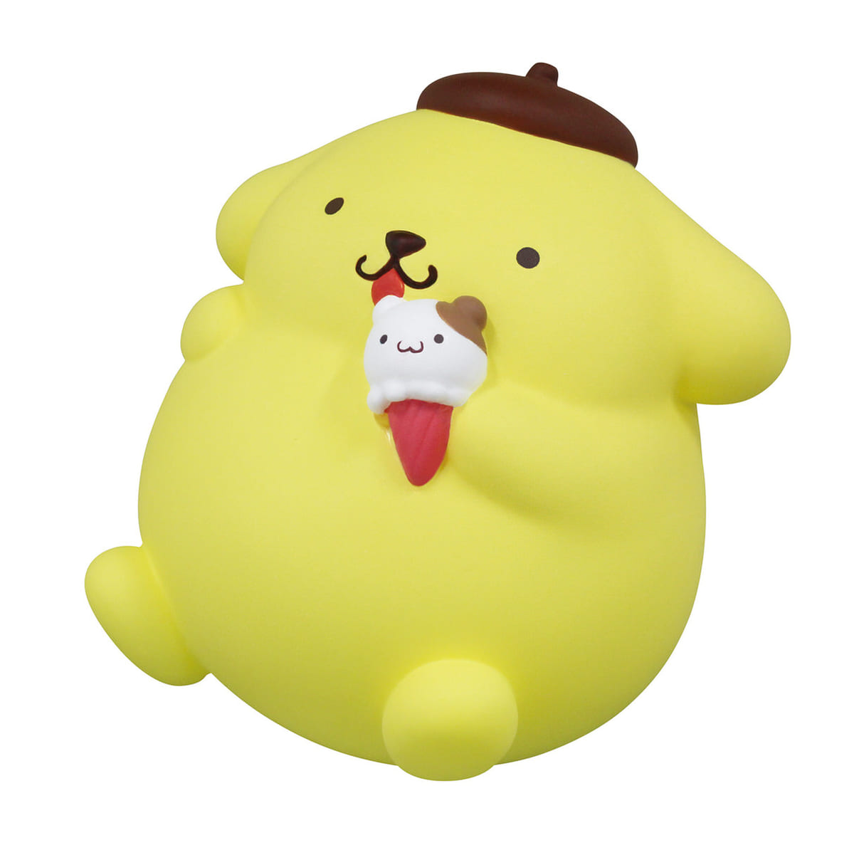 おなかいっぱいのぷくぷく太った姿がたまらない、「ポムポムプリン」のソフビフィギュア!