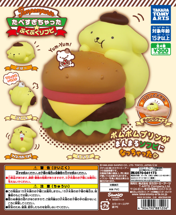 タカラトミーアーツのガチャ「ポムポムプリン たべすぎちゃった☆ぷくぷくソフビ」は、2020年6月に登場です。