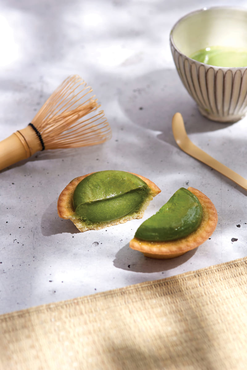香り高い一番茶摘みの宇治抹茶を贅沢にチーズムースに練りこんだ「抹茶チーズタルト」。