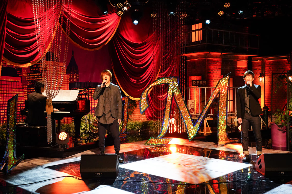 6月20日(土)放送の第一夜には、2020年の上演が中止となってしまったミュージカル3作品『「ウエスト・サイド・ストーリー」Season3』より、トニー役の浦井健治さん、柿澤勇人さん、マリア役の桜井玲香さん、伊原六花さん、『エリザベート』よりトート役の井上芳雄さん『ミス・サイゴン』よりキム役の昆夏美さん、屋比久知奈さん、クリス役の小野田龍之介が登場しそれぞれの代表曲を熱唱。