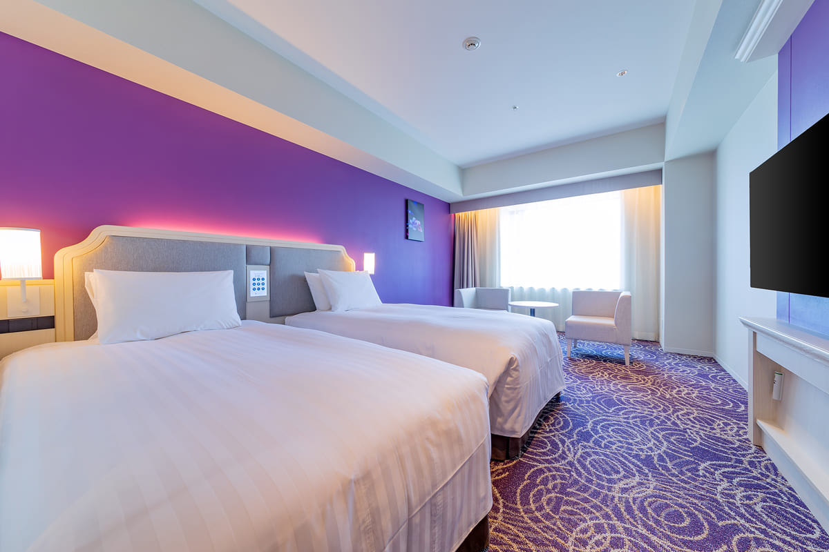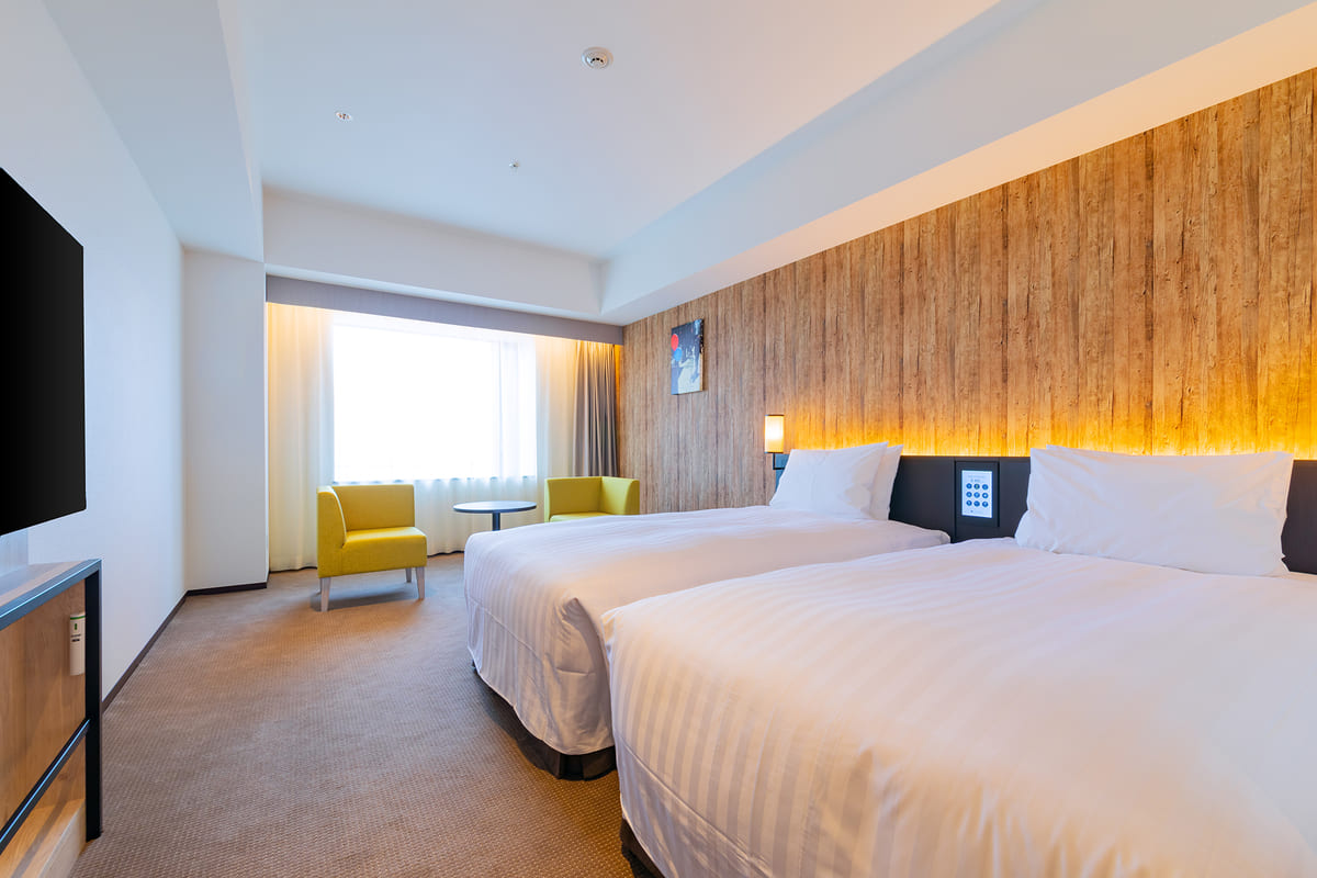 客室は、コンパクトで落ち着いた雰囲気のツインベッドのお部屋「スタンダードルーム」と、