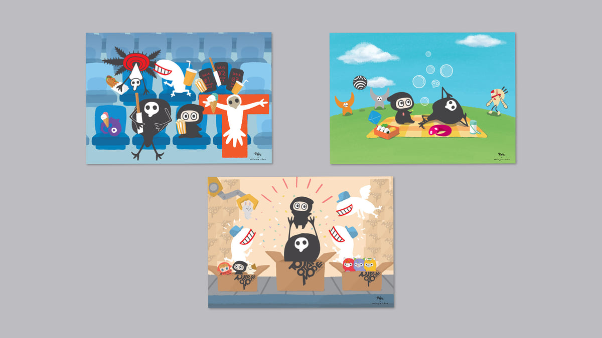そんな、ゆるしととNinja-kunが楽しく遊ぶゆかいな日常を3種のイラストにデザイン、癒しのオーラただようゆるいアイテムが誕生しました。