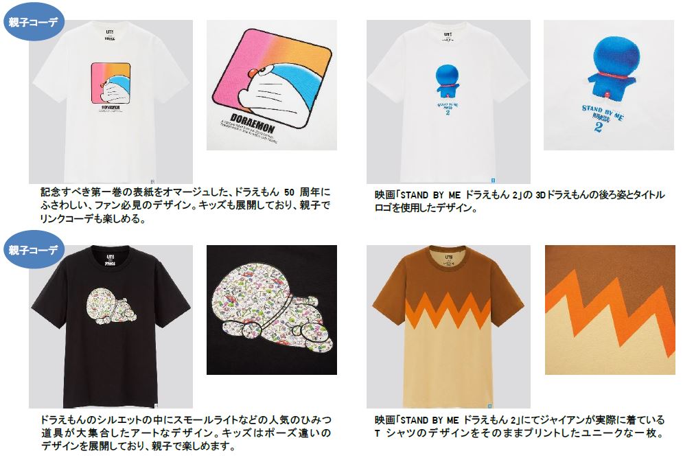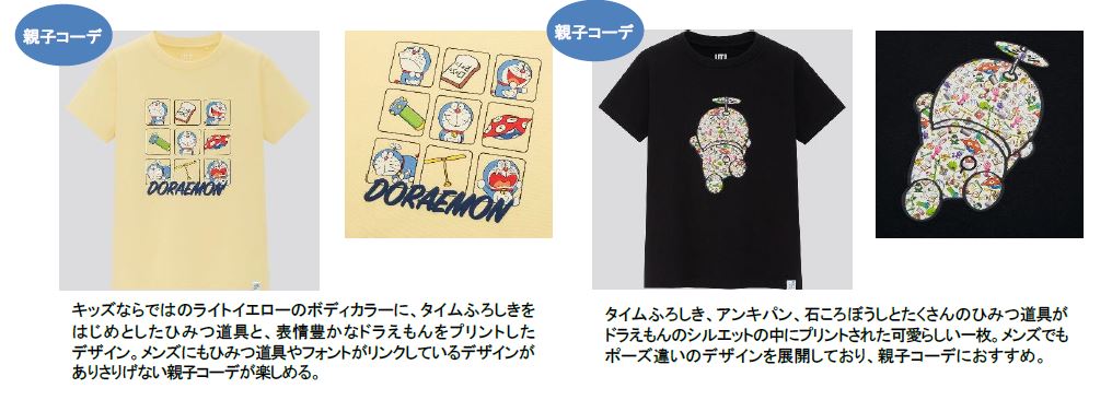 「ドラえもんUT」では、親子コーデも楽しめるよう、大人用と子供用にリンクしたデザインを用意。