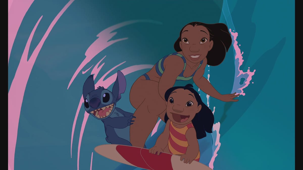 「リロ」や「スティッチ」とサーフィンをして