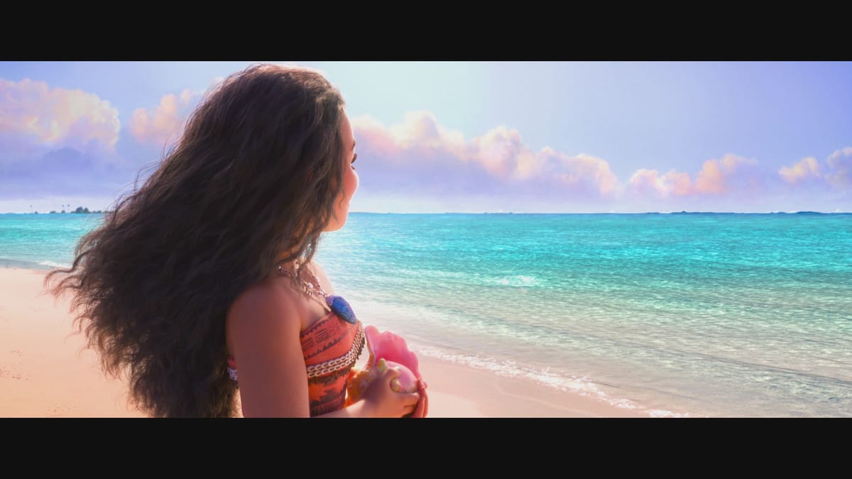 『モアナと伝説の海』にて、目の前に広がる海に思いをはせる「モアナ」や
