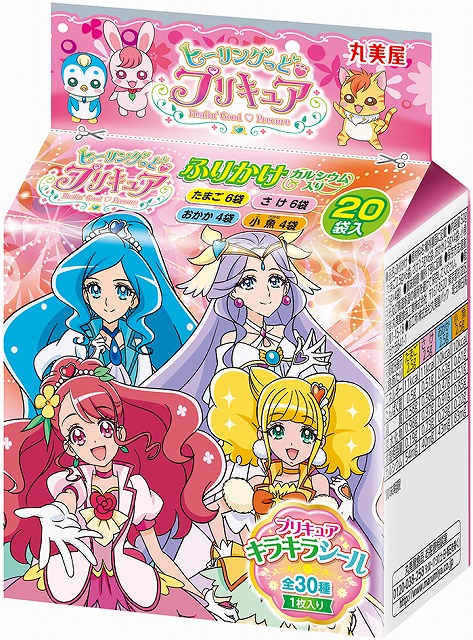 丸美屋から販売中の『ヒーリングっど♥プリキュア』の、「プリキュア ふりかけミニパック」「プリキュア カレー<ポーク&野菜甘口>」「プリキュア プチパックカレー<ポーク&野菜甘口>」「プリキュア お茶づけ」が、2020年7月にリニューアルされます。