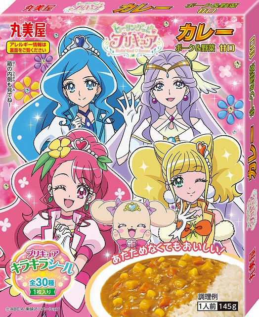 『ヒーリングっど♥プリキュア』の、「プリキュア ふりかけミニパック」「プリキュア カレー<ポーク&野菜甘口>」「プリキュア プチパックカレー<ポーク&野菜甘口>」「プリキュア お茶づけ」は、2020年7月にリニューアルして販売開始です。