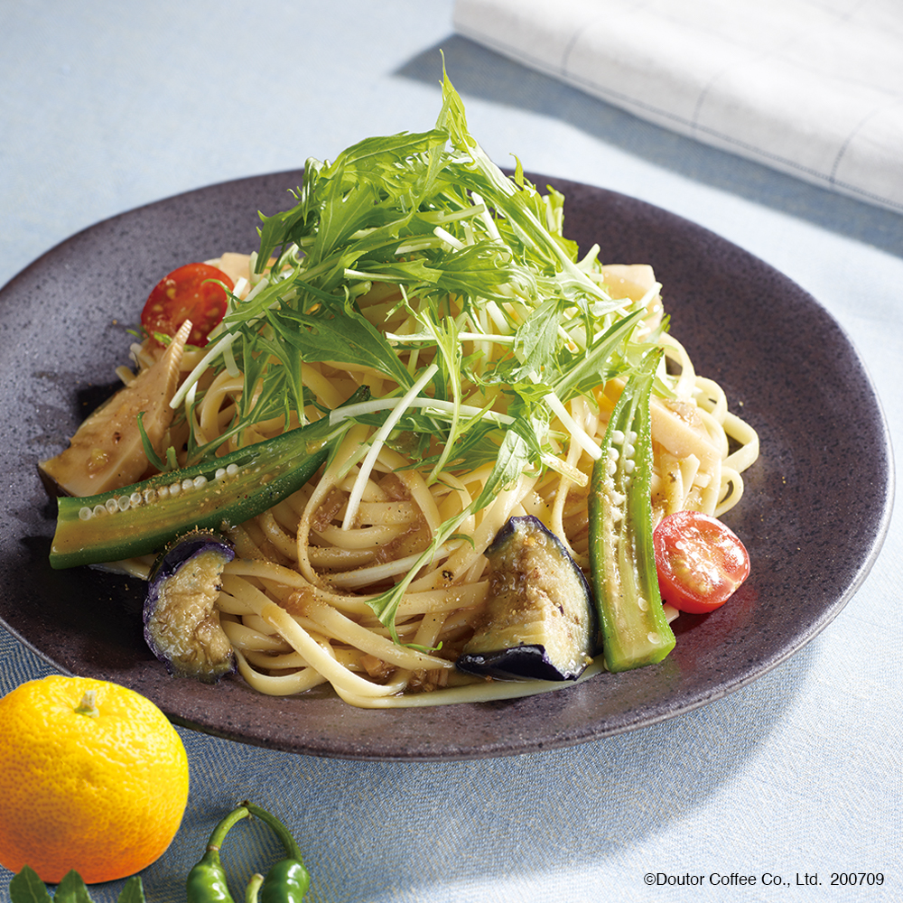 さらに、夏に食べたいフードメニューとして野菜がメインのパスタ「山椒と柚子胡椒香る 彩り野菜の和風パスタ」が発売されます☆