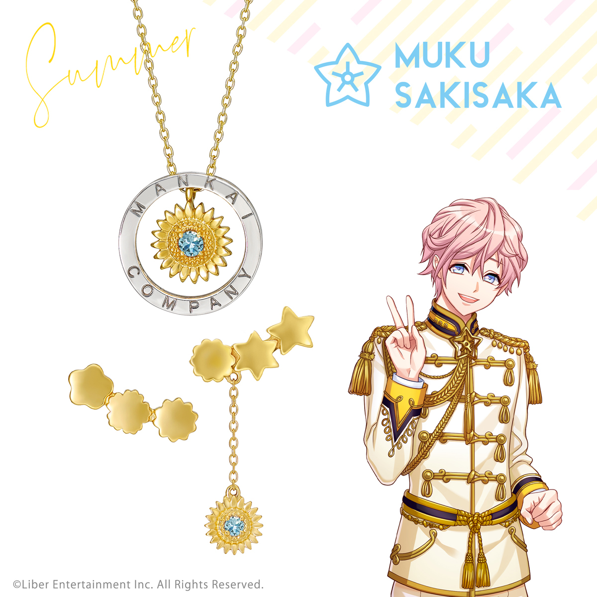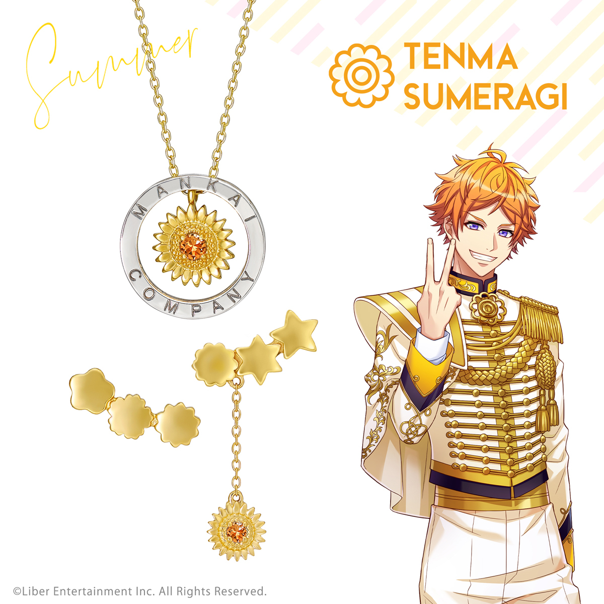 MANKAI COMPANYの刻印が入ったサークルと、夏組の劇団員をイメージしたひまわりモチーフで、個性豊かな劇団員がチームとしてまとまる様子をデザインした「ネックレス」