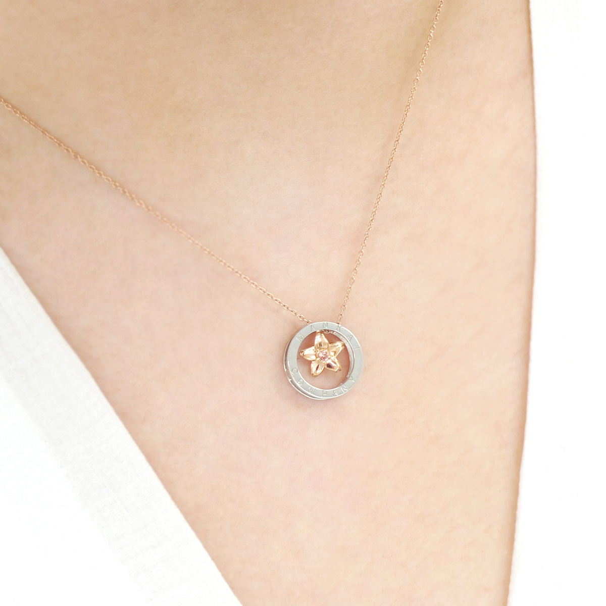 ピンクゴールドは肌なじみが良く、どんな装いにもマッチするお色味。