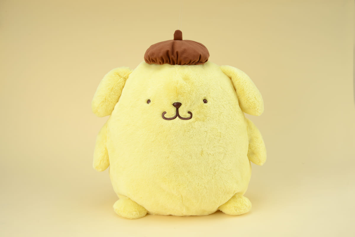 「ポムポムプリン」のギガジャンボぬいぐるみは、もこもこの手触りが抜群☆