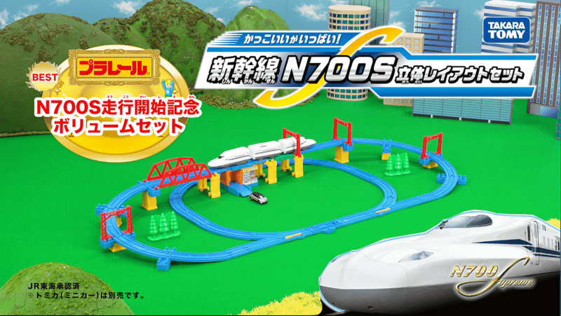 「かっこいいがいっぱい!新幹線N700S 立体レイアウトセット」は、JR東海の新型車両 新幹線「N700S」の営業運転開始を記念して登場する商品。