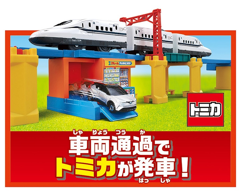 このパーツの上もしくは後ろをプラレール車両が通過すると「トミカ」が自動的に発車するため、立体レイアウトと平面レイアウトの2WAYでトミカ発車遊びが楽しめます。