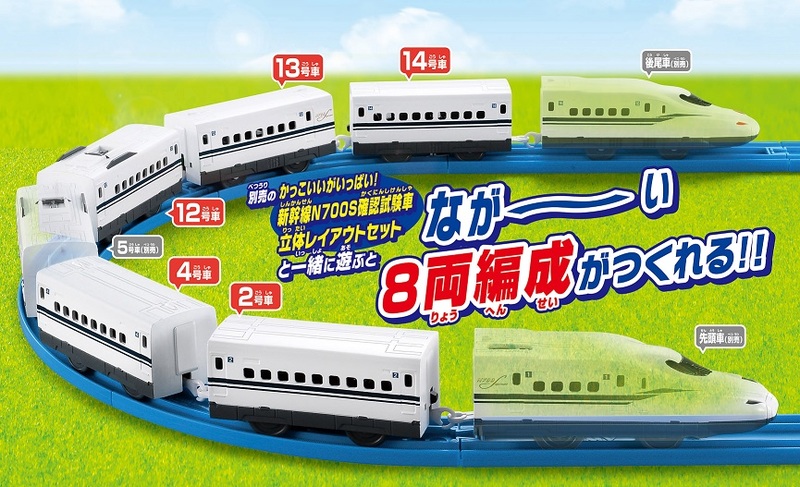 「かっこいいがいっぱい!新幹線N700S 立体レイアウトセット」と組み合わせることで新幹線「N700S」が全8両の長編成になる、中間車5両のセット「長編成で走らせよう!新幹線N700S確認試験車中間車セット」