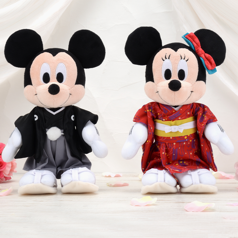 着物姿の「ミッキーマウス」と「ミニーマウス」のぬいぐるみはオールシーズン飾れるのもポイント。