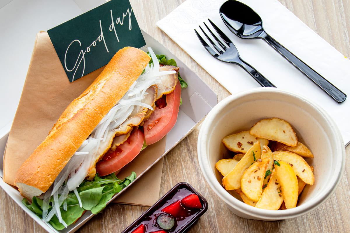 チェックイン当日のランチでは、野菜たっぷりのバゲットサンドでおしゃれに楽しむこともできます☆